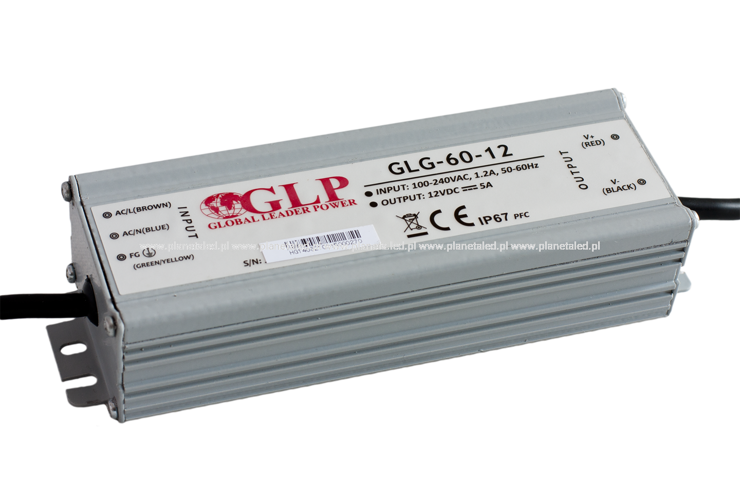 GLP zasilacz impulsowy PFC 60W, IP67, 12V/5A