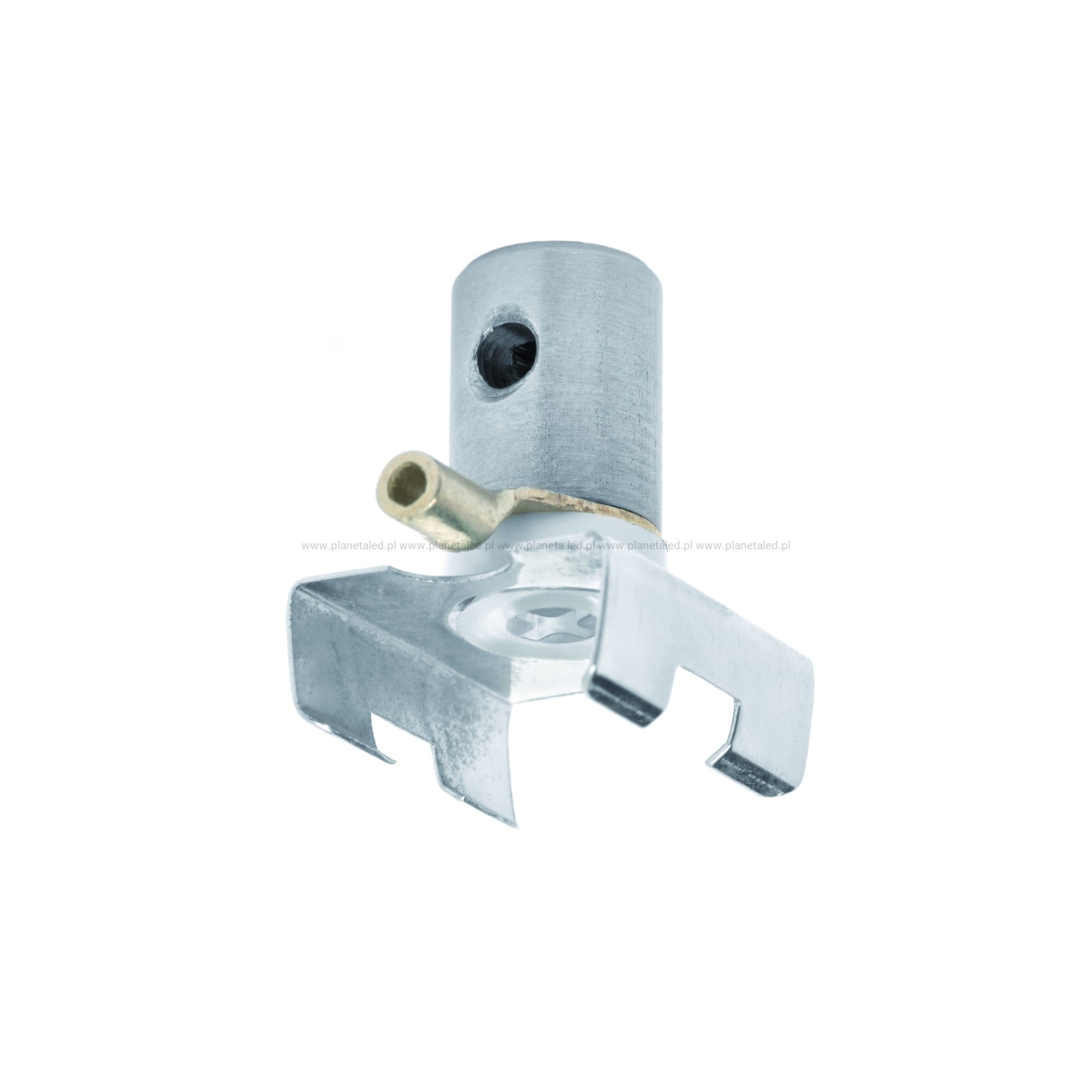 Głowica służąca do zamocowania opraw oświetleniowych na wysięgnikach ściennych. Wyposażona w MOCOWNIK PDS dla profili standardowych oraz śrubę tworzywową z przelotem. Służy ona do poprowadzenia przewodu zasilającego dla jednego bieguna prądu.