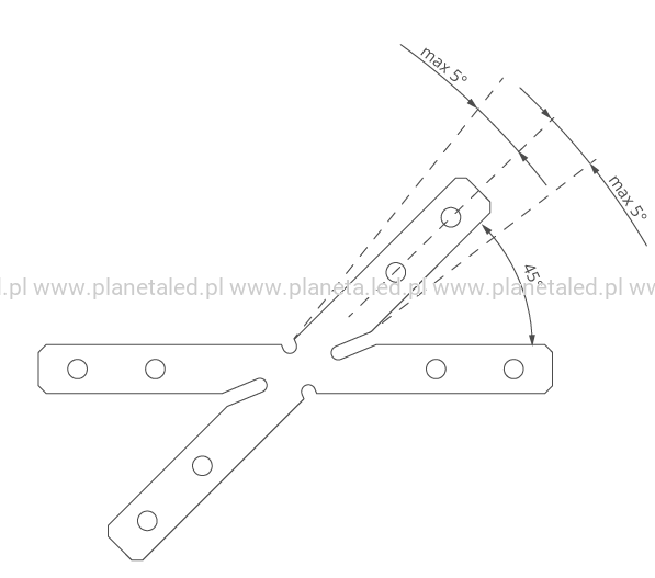 - jeżeli kąt między łączonymi oprawami jest inny niż nominalny, możemy dogiąć go do żądanej wartości o 5 stopni na stronę