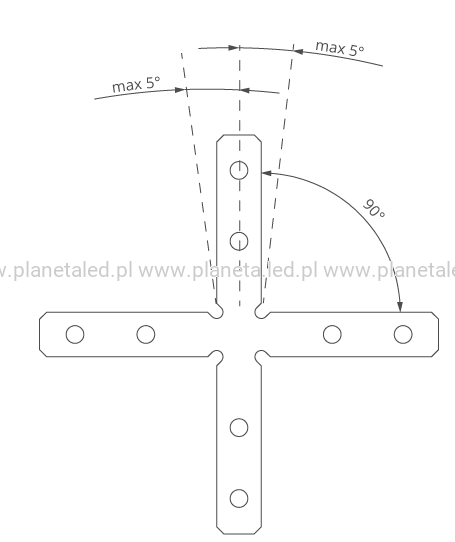 - jeżeli kąt między łączonymi oprawami jest inny niż nominalny, możemy dogiąć go do żądanej wartości o 5 stopni na stronę
