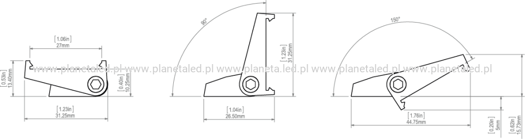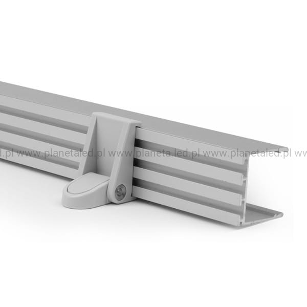 Mocownik do osadzania na powierzchni profili z grupy architektonicznych (np. GIZA, LIPOD). Zapewnia możliwość regulacji kąta świecenia oprawy. Posiada otwór na wkręt mocujący w podstawie, ukryty pod zdejmowaną maskownicą. Profil osadzany jest w ruchomym uchwycie.