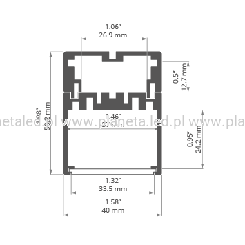 *Możliwość montażu "od ściany do ściany" - istnieje możliwość montażu zaślepek od dołu. Aby zmontować oprawę od dołu, należy wyłamać plastikowe wewnętrzne elementy zaślepki w jej górnej części. Następnie zmontowany zespół elementów (zaślepki i profil z taśmami LED) wmontować w listwę montażową.