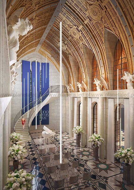 - do aranżowania dużych, wysokich pomieszczeń np. wnętrz obiektów publicznych (dworców, galerii handlowych, teatrów, bibliotek, klatek schodowych) itp.
