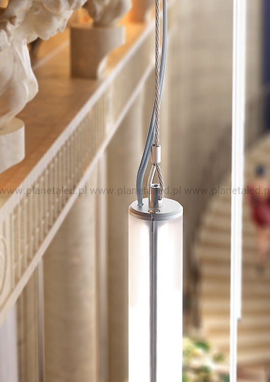 W przypadku opraw o zwiększonym poborze mocy i długim zawieszeniu, zaleca się stosowanie zaślepki zasilającej z otworem, umożliwiającej przeprowadzenie przewodu o odpowiednim przekroju.