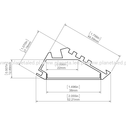 - miejsce na pasek LED: 22 mm