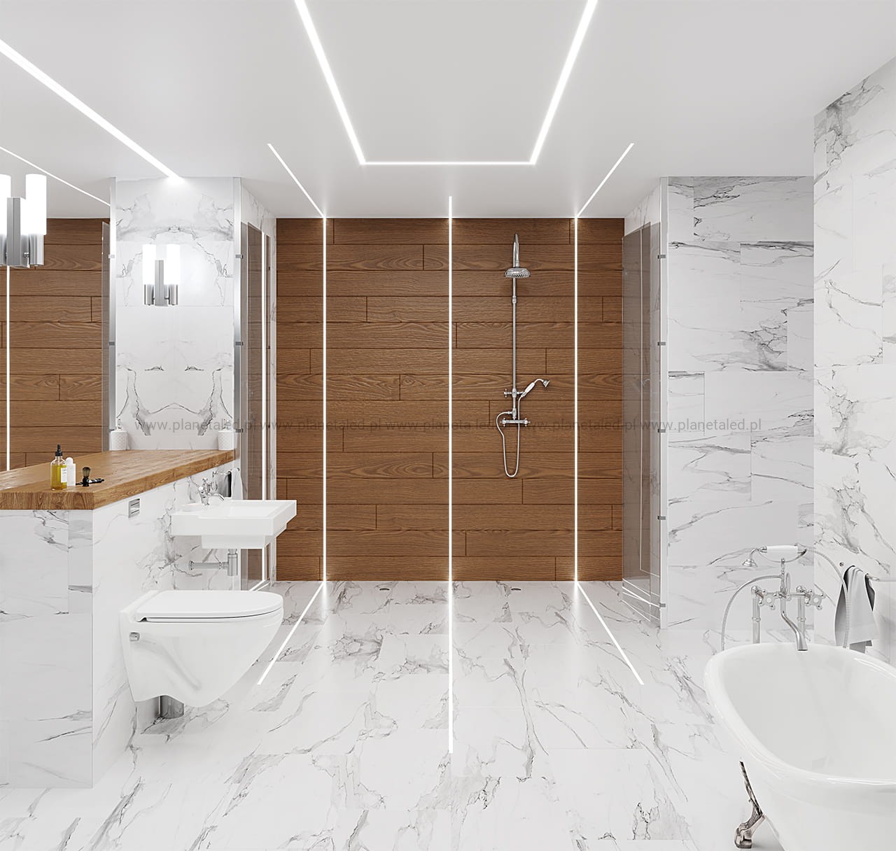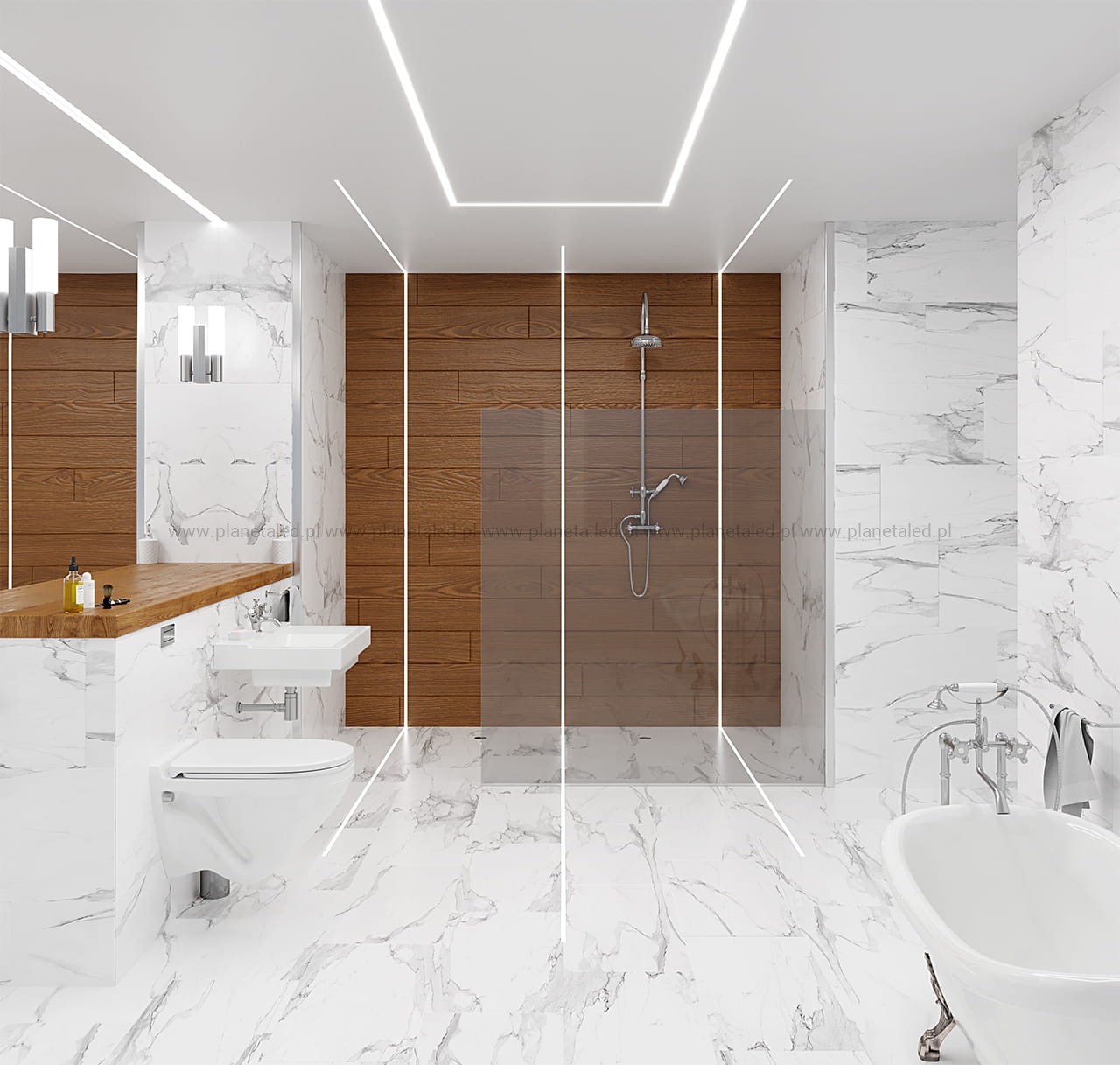 Profil P11-1 jest przeznaczony głównie do montażu podłogowego i ściennego, gdzie taśma LED jest narażona na wilgoć lub chwilowy kontakt z wodą. Poprzez uszczelnienie osłonki C5 istnieje możliwość uzyskania wodoszczelności na poziomie IP67, co pozwala na montaż w łazienkach i kabinach prysznicowych.