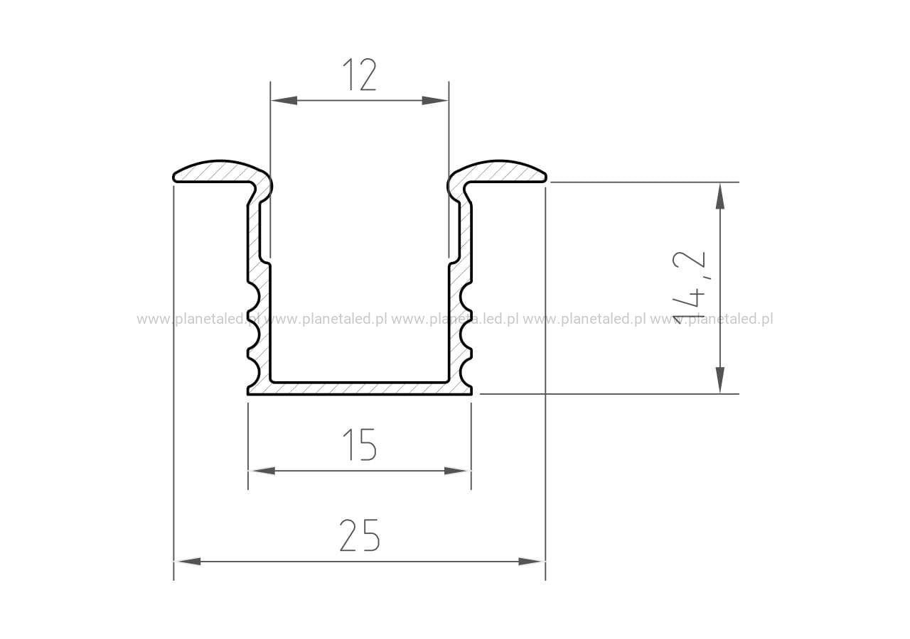 Profil P18-1 jest przeznaczony do wpuszczania w wyfrezowane lub wycięte otwory. Może zostać użyty w dowolnej powierzchni (GK, płyty meblowe, ściany, sufity, itp.), a estetyczne skrzydełka kompletnie zasłonią krawędzie otworu. Dzięki wysokości 15mm jest stosowany tam, gdzie trzeba uzyskać jednolitą linię światła na całej powierzchni (dot’s free). Stosowany między innymi przy wykańczaniu wnętrz oraz w meblarstwie. Minimalna głębokość otworu 14,2mm.