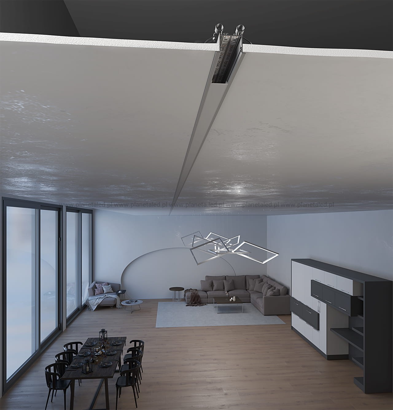 Profil architektoniczny P22-1 jest przeznaczony do wpuszczania w wyfrezowane lub wycięte otwory. Może zostać użyty w dowolnej powierzchni (GK, płyty meblowe, ściany, sufity, itp.), a estetyczne skrzydełka kompletnie zasłonią krawędzie otworu. Mieści 2-3 taśmy LED i doskonale sprawdza się do tworzenia złożonych opraw świetlnych w budynkach komercyjnych lub w domu. Budowa profilu oraz osłonka z poliwęglanu (PC) pozwala uzyskać jednolitą linię światła na całej powierzchni (dot’s free).