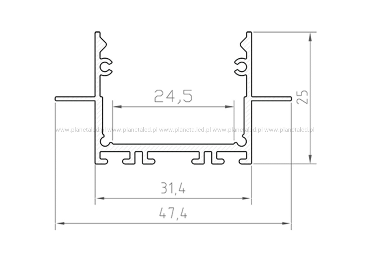 Profil architektoniczny P22-2 jest przeznaczony do montażu w płycie GK (do grubości 12,5mm). Jego konstrukcja umożliwia zlicowanie profilu z powierzchnią płyty. Mieści 2-3 taśmy LED i doskonale sprawdza się do tworzenia złożonych opraw świetlnych w budynkach komercyjnych lub w domu (linie świetlne w sufitach podwieszanych i ścianach GK). Budowa profilu oraz osłonka z poliwęglanu (PC) pozwala uzyskać jednolitą linię światła na całej powierzchni (dot’s free).