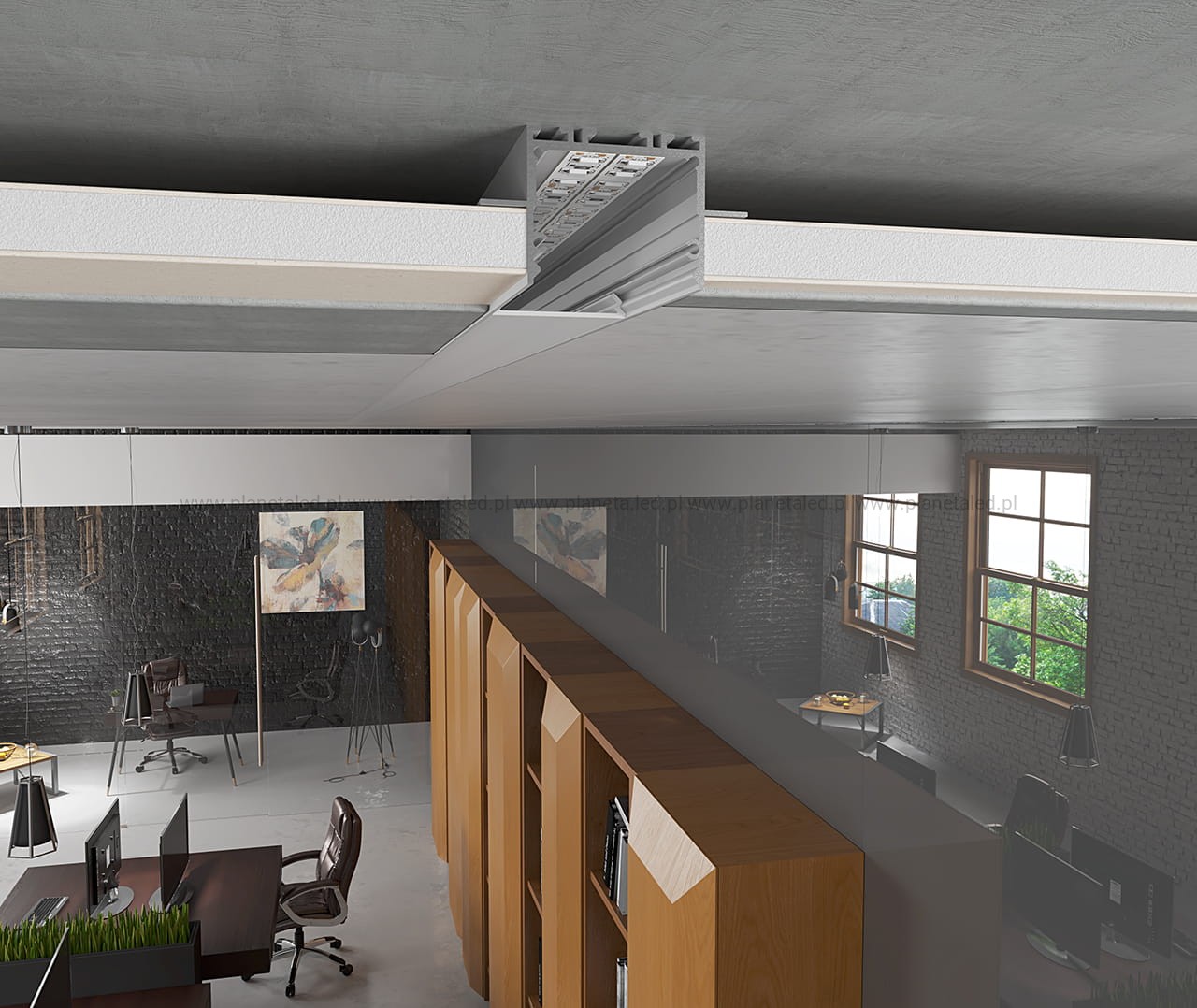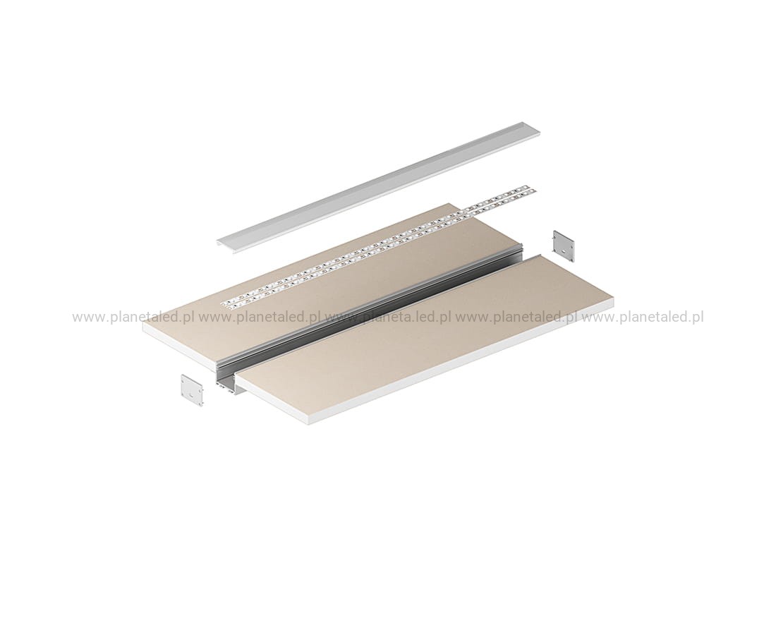 Profil architektoniczny P22-2 jest przeznaczony do montażu w płycie GK (do grubości 12,5mm). Jego konstrukcja umożliwia zlicowanie profilu z powierzchnią płyty. Mieści 2-3 taśmy LED i doskonale sprawdza się do tworzenia złożonych opraw świetlnych w budynkach komercyjnych lub w domu (linie świetlne w sufitach podwieszanych i ścianach GK). Budowa profilu oraz osłonka z poliwęglanu (PC) pozwala uzyskać jednolitą linię światła na całej powierzchni (dot’s free).