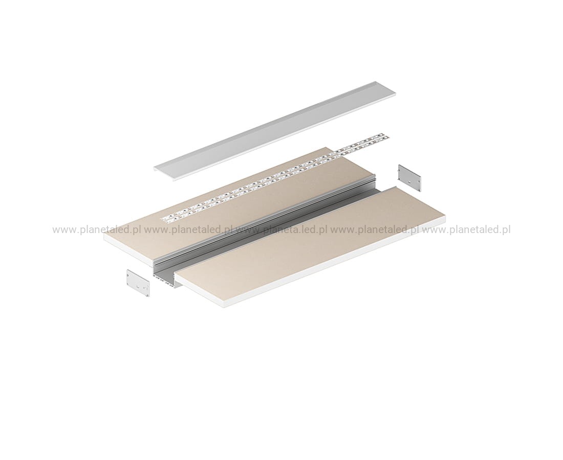 Profil architektoniczny P23-2 jest przeznaczony do montażu w płycie GK (do grubości 12,5mm). Jego konstrukcja umożliwia zlicowanie profilu z powierzchnią płyty. Mieści 4-5 taśm LED i doskonale sprawdza się do tworzenia złożonych opraw świetlnych w budynkach komercyjnych lub w domu (linie świetlne w sufitach podwieszanych i ścianach GK). Budowa profilu oraz osłonka z poliwęglanu (PC) pozwala uzyskać jednolitą linię światła na całej powierzchni (dot’s free).