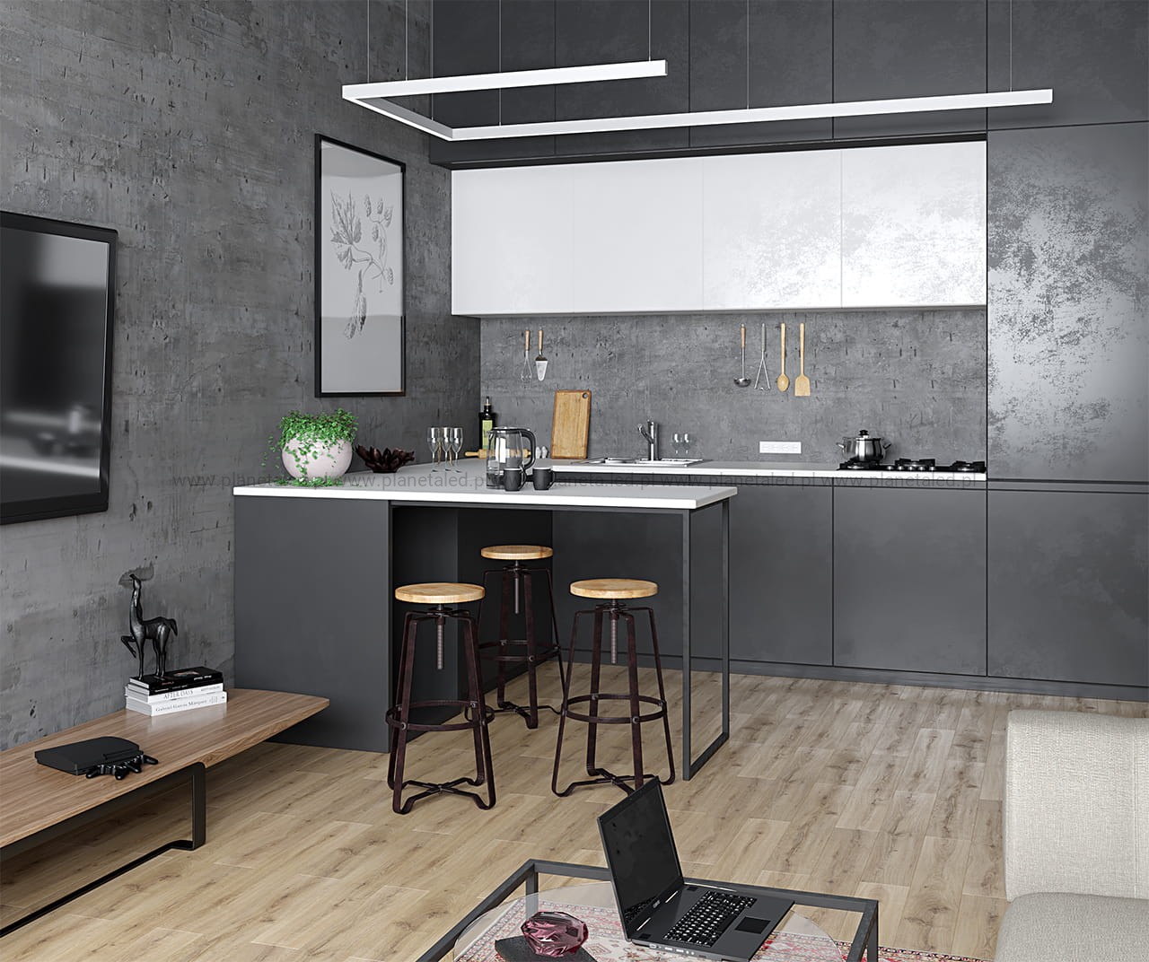 Profil architektoniczny P23-3 jest przeznaczony do montażu napowierzchniowego lub jako wisząca oprawa. Mieści 4-5 taśm LED. Doskonale sprawdza się w budynkach komercyjnych (biura, sklepy) jak również w domu. Budowa profilu oraz osłonka z poliwęglanu (PC) pozwala uzyskać jednolitą linię światła na całej powierzchni (dot’s free).