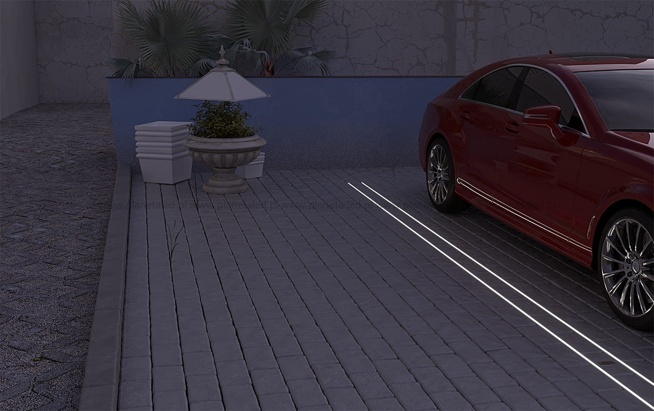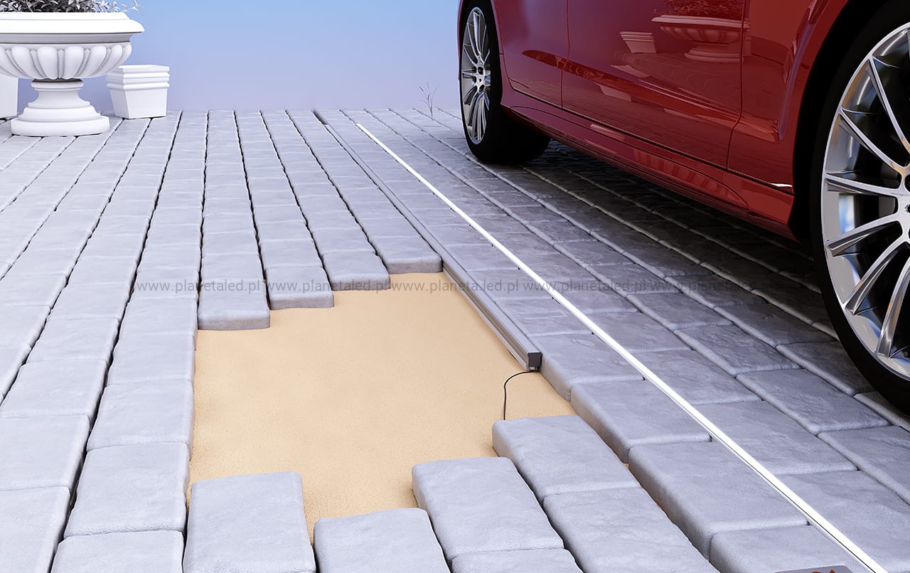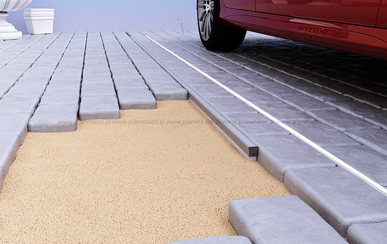Profil P24-1 jest przeznaczony do montażu podłogowego zarówno w środku jak i na zewnątrz. Sprawdza się tam gdzie taśma LED jest narażona na kontakt z wodą. Poprzez uszczelnienie osłonki C5 istnieje możliwość uzyskania wodoszczelności na poziomie IP67. Doskonale sprawdza się na podjazdach, chodnikach, parkingach.