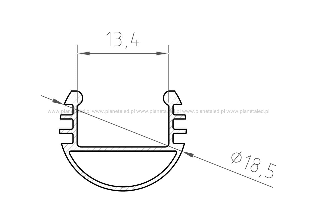 Profil P8-1 jest profilem okrągłym o średnicy 18,5mm. Główne zastosowanie znajduje przy doświetlaniu obrazów, ścian czy witryn sklepowych.