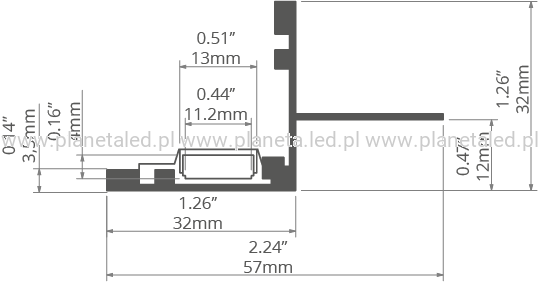 - miejsce na pasek LED: 11.2 mm