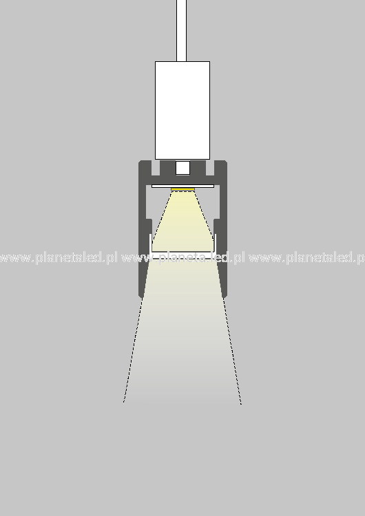 Ukryte źródło światła w oprawie zapewnia wyższy komfort przebywania we wnętrzach z dużą ilością opraw oświetleniowych. Zagłębione źródło światła w profilu PDS-ZMG utrudnia kontakt wzrokowy z najjaśniejszym elementem oprawy.