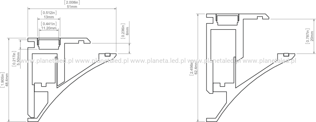 - miejsce na pasek LED: 11.2 mm
