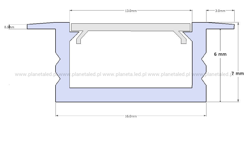 PROFILE typu LED z pokrywką z przezroczystego PCV.