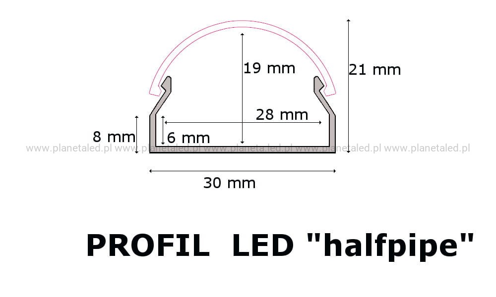 PROFILE typu LED z pokrywką z przezroczystego PCV.