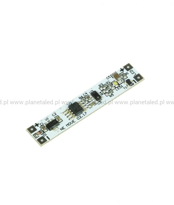 Całkowicie bezdotykowy włącznik do oświetlenia LED. W przypadku zastosowania tego włącznika w profilu aluminiowym, można go przesłonić w całości pleksi (działa przez klosz). Poprzez szybki ruch ręką włączamy, lub wyłączamy oświetlenie LED. W celu rozjaśnienia lub ściemnienia przytrzymujemy dłużej rękę pod czujnikiem.