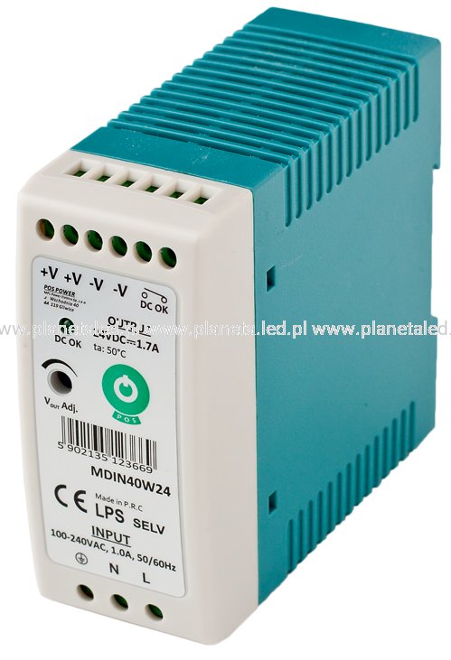 Zasilacz DIN 24V/1.7A, plastic case, slim