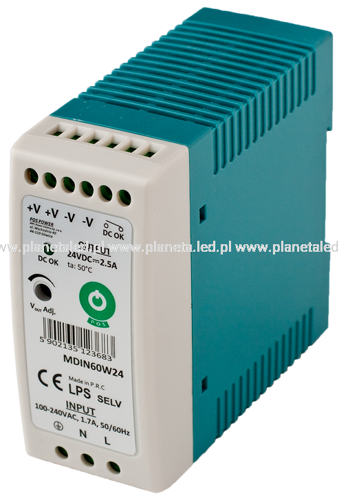 Zasilacz DIN 24V/2.5A, plastic case, slim