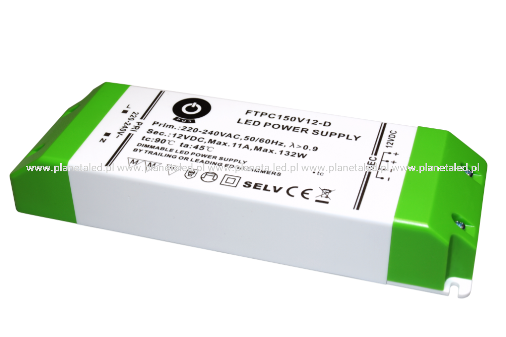 Zasilacz LED 12V/11A 48-132W CV, slim plastic case, DIMMING AC TRIAC