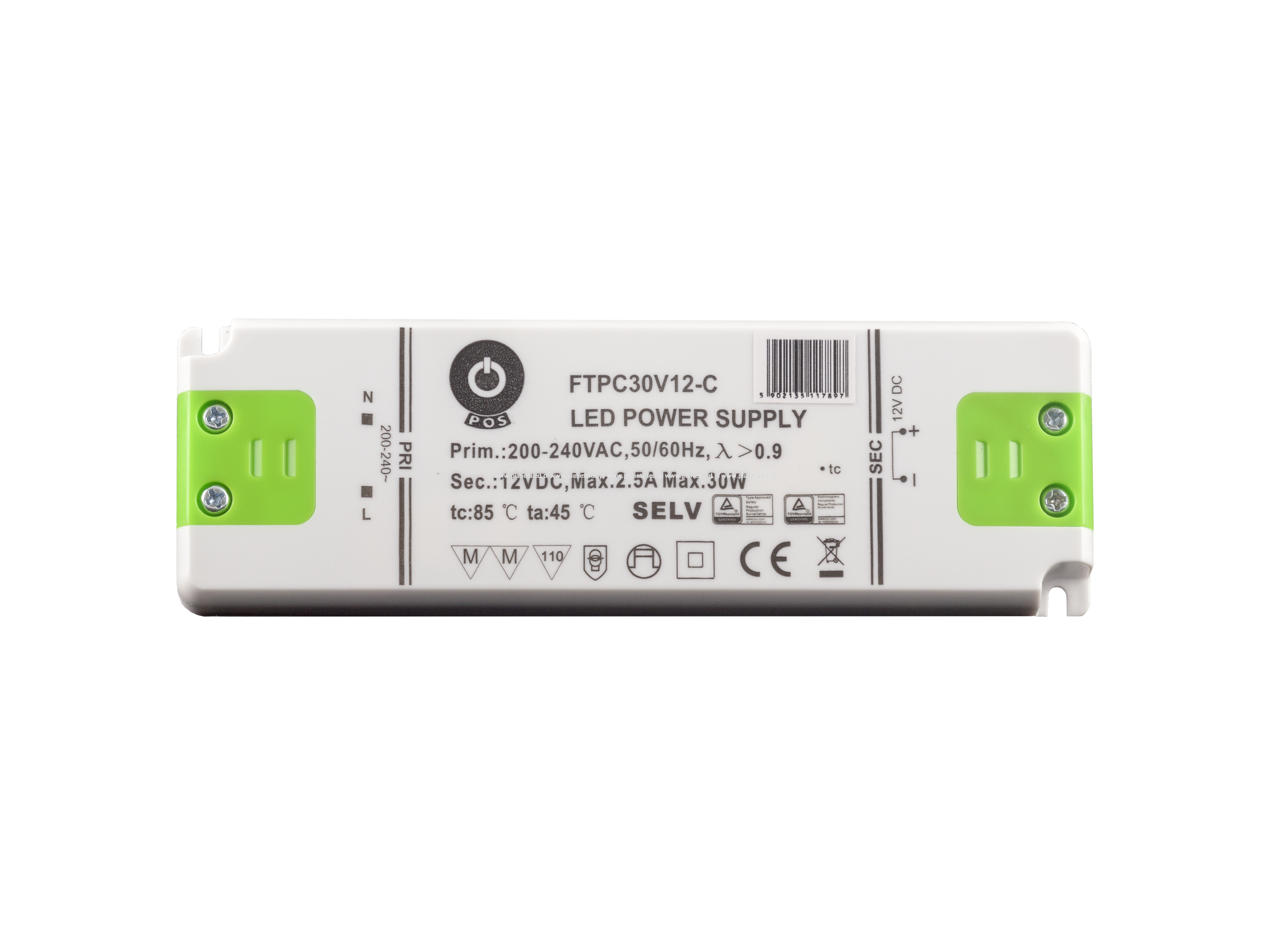 Zasilacz LED 12V/2.5A CV, compact plastic case