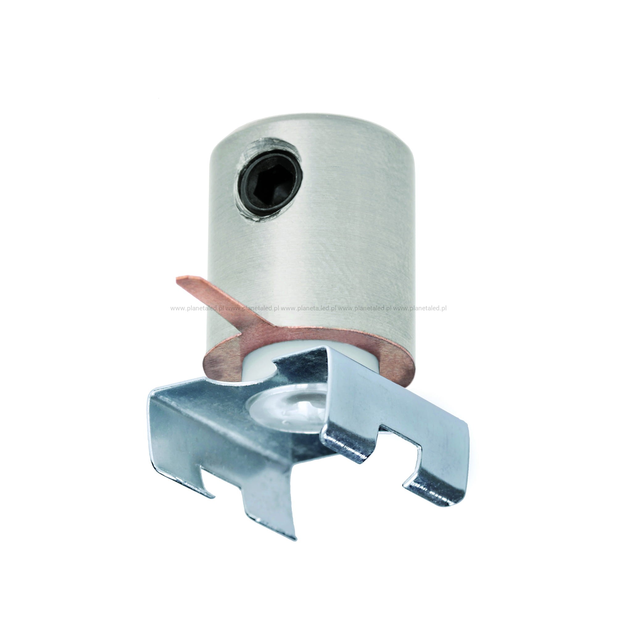 Standardowa zawieszka zasilająca do lekkich opraw oświetleniowych. Profil osadzany jest w MOCOWNIKU 45. Zasilanie doprowadzane jest na zewnątrz zawieszki do łącznika prądowego. Jedną zawieszką zasilany jest jeden biegun prądu. Wyposażona jest w ZACZEP WZDŁUŻNY do PRĘTA FI-3, który pełni rolę przewodu zasilającego.
