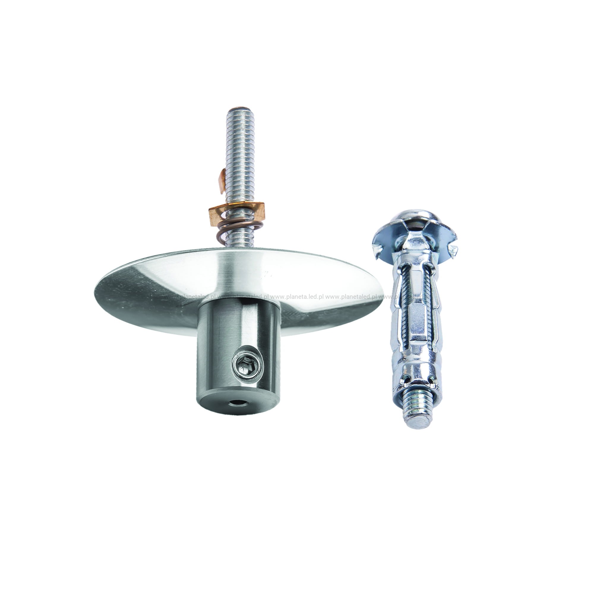 Zawieszka wzdłużna 49 zasilająca, przeznaczona do mocowania opraw oświetleniowych w panelach kartonowo-gipsowych. Posiada kołek rozporowy do karton-gipsu, przyłącze dla jednego bieguna prądu oraz wzdłużne zamocowanie dla PRĘTA FI-3. Dodatkowo jest wyposażona w maskownicę 49 do ukrycia poszarpanych krawędzi otworu.