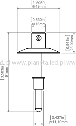 Zawieszka wzdłużna 49 zasilająca, przeznaczona do mocowania opraw oświetleniowych w powierzchniach murowanych. Posiada kołek rozporowy do muru, przyłącze dla jednego bieguna prądu oraz wzdłużne zamocowanie dla PRĘTA FI-3. Dodatkowo jest wyposażona w maskownicę 49 do ukrycia poszarpanych krawędzi otworu.
