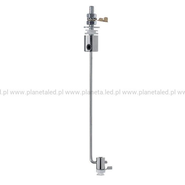 Gotowy zestaw elementów do podwieszenia i zasilenia od jednej strony lekkiej oprawy oświetleniowej. Dolna zawieszka wyposażona jest w zewnętrzne przyłącze dla jednego bieguna prądu. Zapewnia też możliwość regulacji kąta, pod jakim zamocowana jest oprawa. Wygięty pręt o długości 50 cm pełni funkcję przewodu zasilającego. Górna zawieszka służy jako zamocowanie np. do panelu drewnianego i przyłącze do zasilacza.