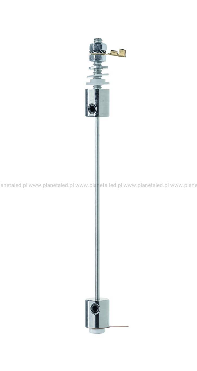 Gotowy zestaw elementów do podwieszenia i zasilenia od jednej strony lekkiej oprawy oświetleniowej. Dolna zawieszka wyposażona jest w zewnętrzne przyłącze dla jednego bieguna prądu. Pręt o długości 43 cm pełni funkcję przewodu zasilającego. Górna zawieszka służy jako zamocowanie np. do panelu drewnianego i przyłącze do zasilacza.